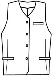製式 | 前面 | 打ち合せを右上前とするほかは、男性と同じものとする。Vネックのベストを含む。形状は図のとおりとする。 | |